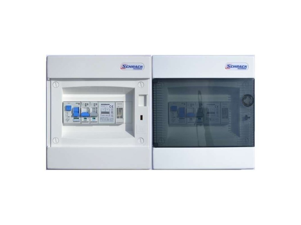 Bílá plastová instalační rozvodnice s transparentními dvířky určená k rozvodům elektrické energie a jištění elektrických obvodů a zařízení v domech, bytech či kancelářích. Rozvodnice je připravena k instalaci, je opatřena proudovým chráničem v souladu s ČSN 33 2000-4-41 ed.2 a jističi.