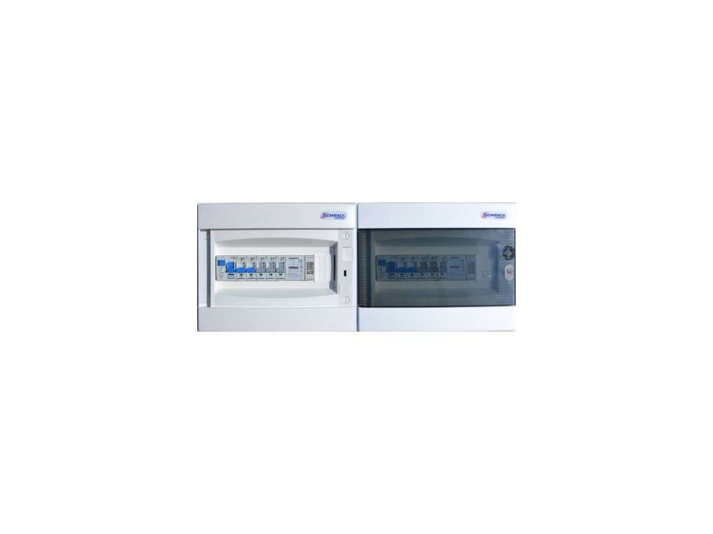 Bílá plastová instalační rozvodnice s transparentními dvířky určená k rozvodům elektrické energie a jištění elektrických obvodů a zařízení v domech, bytech či kancelářích. Rozvodnice je připravena k instalaci, je opatřena proudovým chráničem a jističi.