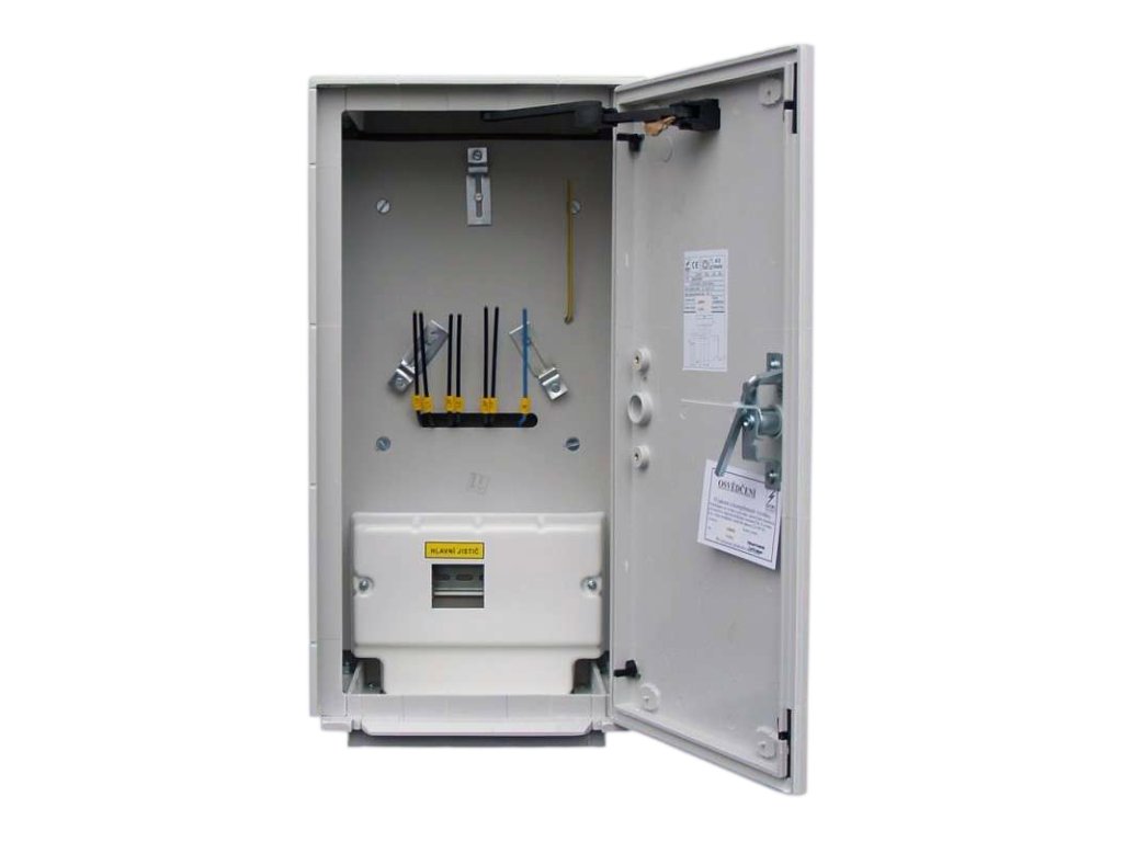 Elektroměrový rozvaděč pro osazení do zdi určený pro jeden přímý třífázový elektroměr bez HDO. Slouží pro přímé měření spotřeby elektrické energie v objektech (rodinné domy, chaty, chalupy, podružné měření). Rozvaděč je v základu bez hlavního jističe. Hlavní jistič je možné vybrat jako příslušenství k produktu. V takovém případě dodáváme rozvaděč již s osazeným jističem. Součástí rozvaděče osazeného jističem je protokol o zkoušce a štítek. Osazené jističe jsou od výrobce Schrack Technik, série BMS0 a splňují normu EN 60898 a EN 60947-2.