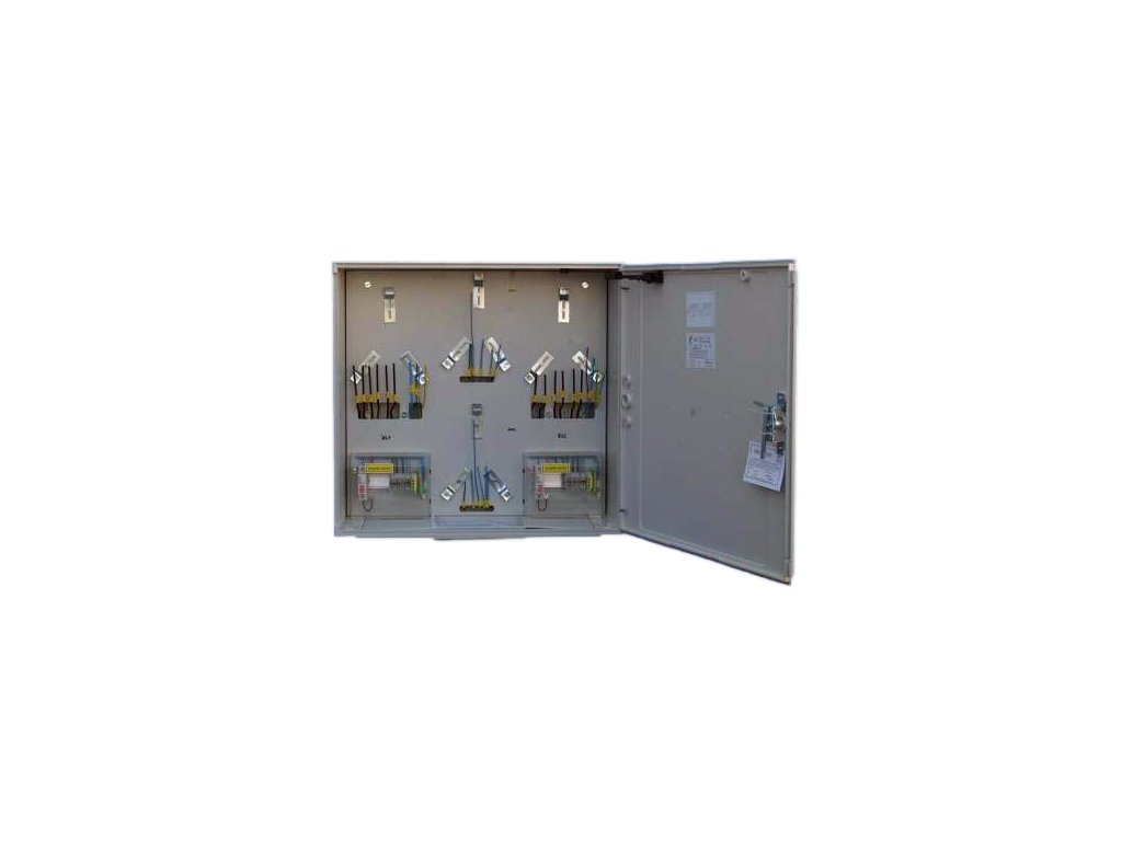 Elektroměrový rozvaděč pro osazení do zdi určený pro dva přímé třífázové elektroměry s HDO a jističi HDO (hromadné dálkové ovládání - spouštění nočního proudu). Slouží pro přímé měření spotřeby elektrické energie v objektech (rodinné domy, chaty, chalupy, podružné měření). Tento rozvaděč je vhodný pro rodinné domy s dvěma samostatnými bytovými jednotkami nebo dvojdomky. Rozvaděč je v základu bez hlavního jističe. Hlavní jistič je možné vybrat jako příslušenství k produktu. V takovém případě dodáváme rozvaděč již s osazeným jističem. Součástí rozvaděče osazeného jističem je protokol o zkoušce a štítek. Osazené jističe jsou od výrobce Schrack Technik, série BMS0 a splňují normu EN 60898 a EN 60947-2.