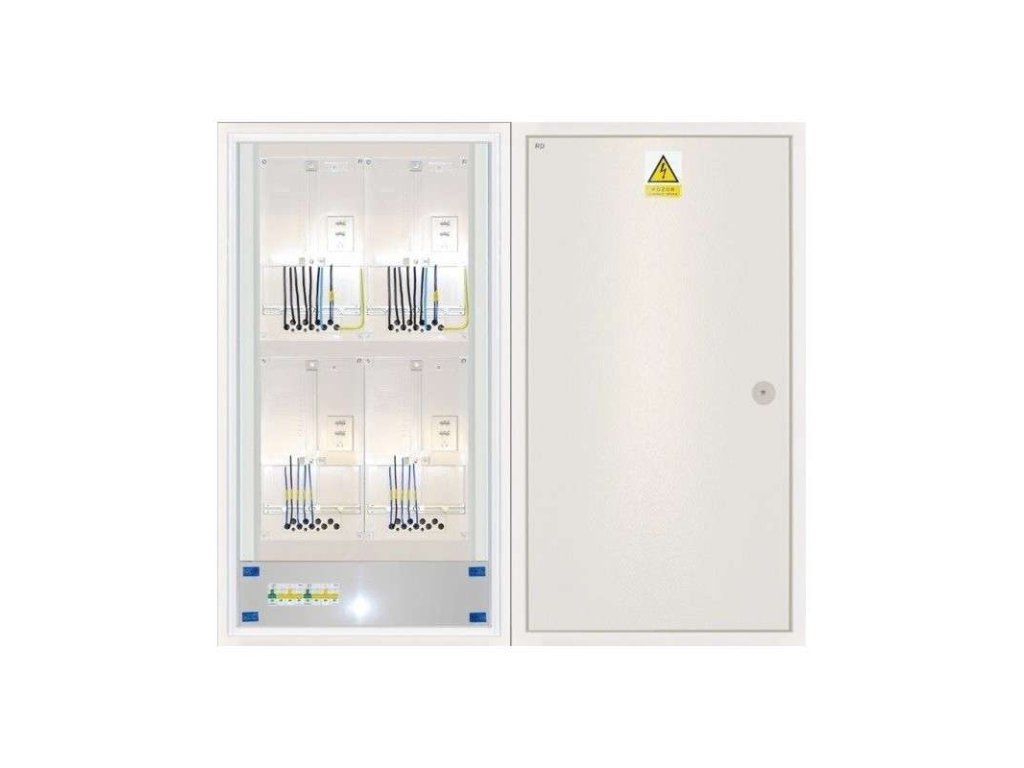 Elektroměrový rozvaděč pro osazení do zdi určený pro dva přímé třífázové elektroměry s HDO a jističi HDO (hromadné dálkové ovládání - spouštění nočního proudu). Slouží pro přímé měření spotřeby elektrické energie v objektech (rodinné domy, chaty, chalupy, podružné měření). Tento rozvaděč je vhodný pro rodinné domy s dvěma samostatnými bytovými jednotkami nebo dvojdomky. Rozvaděč je v základu bez hlavního jističe. Hlavní jistič je možné vybrat jako příslušenství k produktu. V takovém případě dodáváme rozvaděč již s osazeným jističem. Součástí rozvaděče osazeného jističem je protokol o zkoušce a štítek. Osazené jističe jsou od výrobce Schrack Technik, série BMS0 a splňují normu EN 60898 a EN 60947-2.